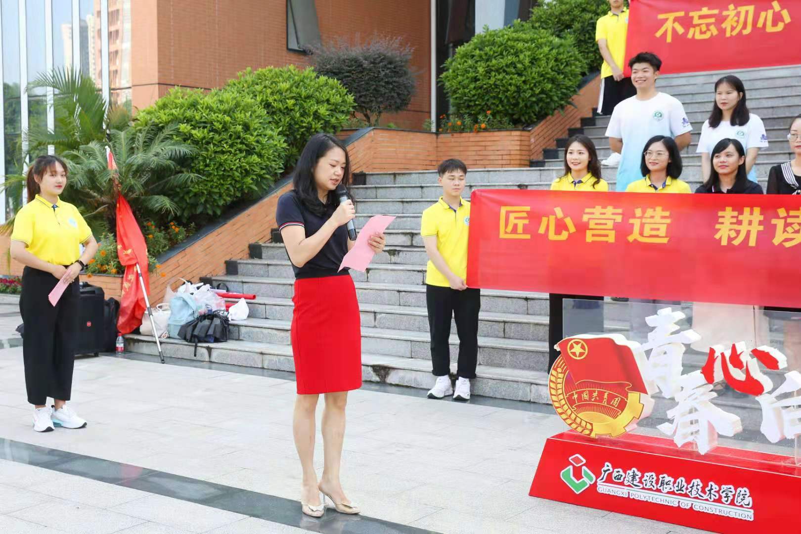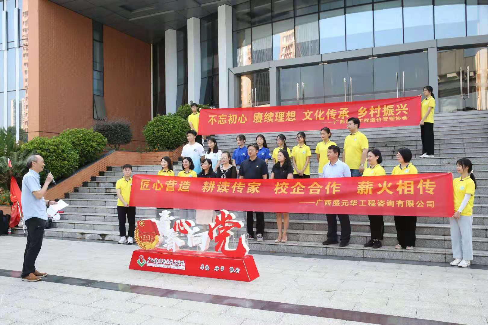 出征儀式合影 廣西建設工程造價管理協會黨支部書記王燕蓉在出征儀式上講話。她說,新時代青年既是實現第一個百年奮斗目標的經歷者、見證者,更是實現第二個百年奮斗目標,建設社會主義現代化國家的生力軍。對此,她希望同學們能夠通過此次“科技、文化、衛生”三下鄉活動,深入了解我國鄉村振興戰略,并通過實踐把服務的熱情和學到的知識運用到新農村的建設中。