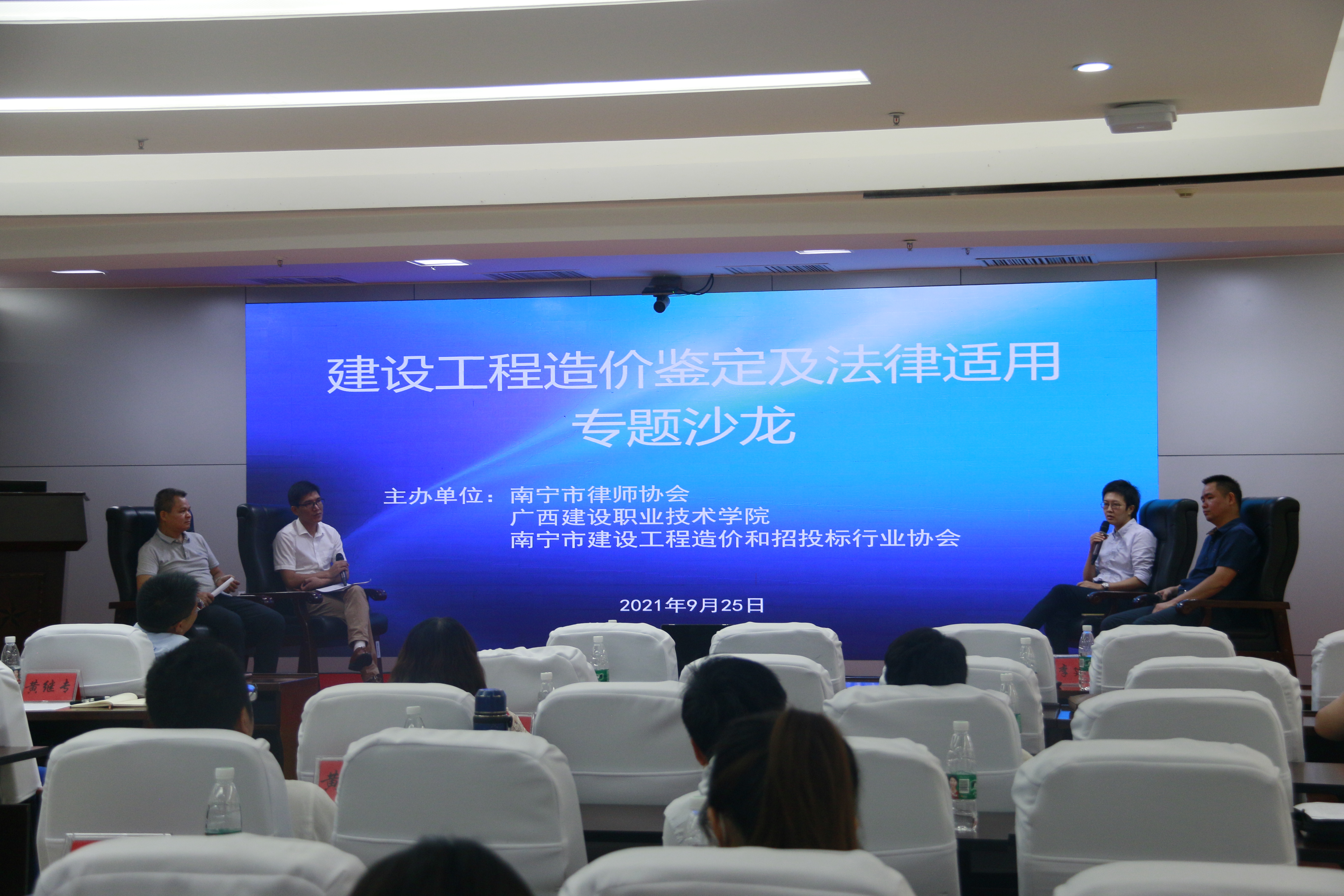 9月25日上午,南寧市律師協會與廣西建設職業技術學院、南寧市建設工程造價和招投標行業協會共同開展的“建設工程造價鑒定及法律適用”專題沙龍活動在南寧市司法局成功召開。